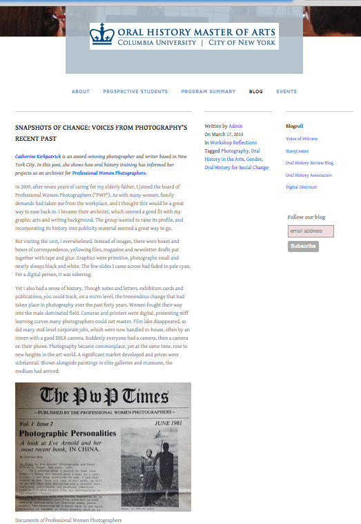 Wrote numerous articles for the PWP blog, including several extended series celebrating Women's History Month: